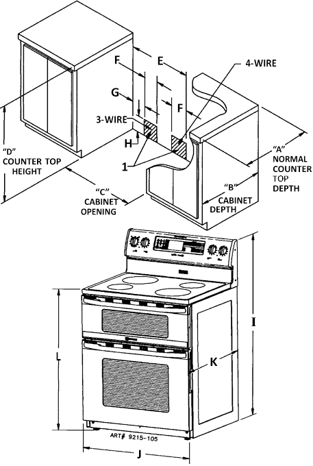 Për informacione të plota në lidhje me instalimin e gamës së pavarur, shihni figurat 1 dhe 2. Për KONSIDERATAT E SIGURISË, mos instaloni një gamë në asnjë kabinet të djegshëm i cili nuk është në përputhje me hapësirat e instalimit të treguara në figurën 1.