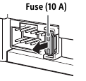 Kur zëvendësoni siguresën, sigurohuni që të përdorni një siguresë (10 A) që përputhet me vlerësimin e amperazhit të deklaruar në siguresën origjinale. Nëse siguresa digjet, kontrolloni lidhjen e energjisë dhe zëvendësoni siguresën. Nëse siguresa digjet përsëri pas zëvendësimit, mund të ketë një mosfunksionim të brendshëm. Në një rast të tillë, konsultohuni me tregtarin tuaj më të afërt të Sony.