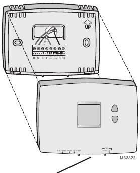 Tërhiqeni nga poshtë për të hequr termostatin nga pllaka e murit.