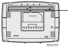 Kthejeni termostatin përmbys, futni bateri të reja AAA alkaline, më pas riinstaloni termostatin.