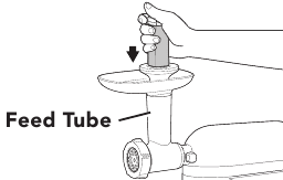 Matumizi ya viambatisho ambavyo havipendekezwi au kuuzwa na KitchenAid yanaweza kusababisha moto, mshtuko wa umeme, au kuumia.- Kamwe usilishe chakula kwa mkono. Tumia kisukumia chakula kila wakati.