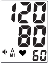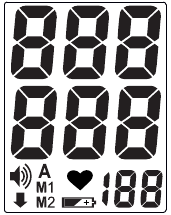 - Unaweza kuona yaliyomo kwenye kumbukumbu kwa kubonyeza kitufe cha M1 au M2. Wakati kitufe cha M1 (au M2) kinabonyezwa kwa mara ya kwanza, thamani ya wastani ya vipimo 3 vya mwisho vilivyohifadhiwa katika M1 (au M2), iliyoonyeshwa na alama ya «A», itaonyeshwa.