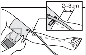- Usahihi wa kipimo cha shinikizo la damu unategemea kama mkono unalingana na ukubwa wa mkono wako. MKONO HAUPASWI KUWA MDOGO SANA AU MKUBWA SANA.