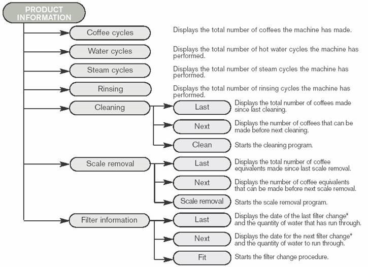 | 20 | Idadi ya mizunguko iliyofanywa tangu uondoaji wa mwisho wa magadi (kahawa, mvuke, uzani wa maji) | mizunguko |