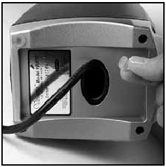 - Mara tu kisaga kikiwa mahali pake, chomeka kamba ya kisaga kwenye kipokezi cha AC ndani ya msingi wa ESATTOTM , na ukunje kamba iliyobaki kwenye nafasi iliyo chini na nyuma ya kisaga.