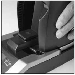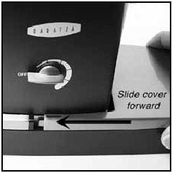 - Ondoa chombo cha kahawa iliyosagwa kutoka kwenye kisaga na utelezeshe kisaga kwa uangalifu kwenye ESATTOTM kutoka nyuma kwenda mbele hadi kisaga kikalie vizuri dhidi ya kifuniko cha mbele.