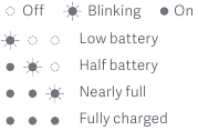 | Betri imechajiwa kikamilifu na imeingia katika hali ya kulala. | Kisafisha utupu kinaweza kutumika kawaida. | |