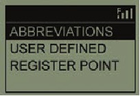 - Ikiwa unahariri pointi iliyopo, chagua jina lake kutoka kwenye orodha, kisha ubonyeze OK/SHOT ukiwa umesimama kwenye pointi ili kusajili eneo lake jipya. Unapounda pointi mpya maalum, chagua CSTM 1 (CSTM 2, n.k.) na ubonyeze OK/SHOT, Kisha unaweza kuchagua ABBREVIATIONS (VIFUPISHO) na uchague kutoka kwenye orodha (CREEK (MKONDO), SAND (MSANGA), HZRD (HATARI), n.k.), au ulipe jina lako mwenyewe la USER DEFINED (LILILOFINULIWA NA MTUMIAJI). Kisha, hakikisha umesimama kwenye pointi, na ubonyeze OK/SHOT ili kuisajili. Unaweza pia kukubali tu jina chaguo-msingi (CSTM1) na uende moja kwa moja kwenye REGISTER POINT (SAJILI POINTI).