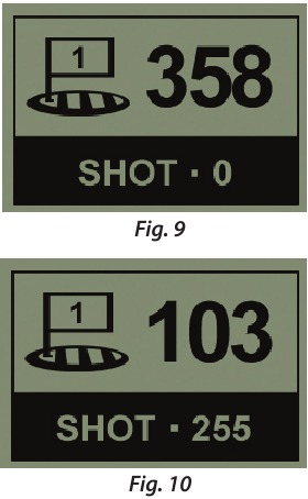 - Bonyeza OK/SHOT ili kuamilisha kipengele cha Umbali wa Pigo (Mchoro 9). Umbali utasasishwa kiotomatiki unaposonga (Mchoro 10).