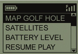 *Ukiwa ndani, au huna mwonekano usio na kizuizi wa anga nje, unaweza kuona ujumbe wa "Not enough satellites..." (Hakuna satelaiti za kutosha...) unapoingia modi ya PLAY GOLF (CHEZA GOFU). Unaweza kubonyeza ESC/MENU ili kurudi kwenye Menyu Kuu, songa hadi eneo bora na/au uone ikiwa ishara ya satelaiti imeimarika, kisha ubonyeze OK (PLAY GOLF ikiwa imechaguliwa) ili kujaribu utafutaji wa eneo la karibu tena.