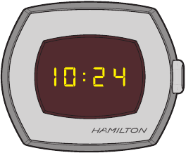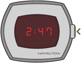 Saa ya Hamilton PSR huonyesha saa kwa kutumia mfumo wa saa wa AM/PM.