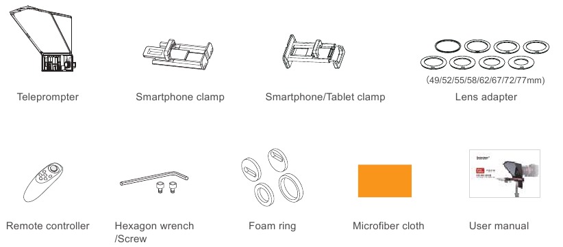 Sakinisha adapta ya lenzi ya 49mm iliyokusanywa kwenye teleprompter