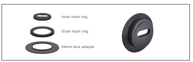 Pete ya povu ya ndani, pete ya povu ya nje, adapta ya lenzi ya 49mm, bandika pete ya povu ya nje kwenye adapta ya lenzi ya 49mm, na kisha uchague pete ya povu ya ndani ambayo inalingana na lenzi ya simu na uipachike katikati ya pete ya povu ya nje