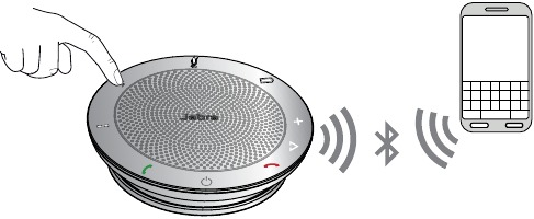 - Achilia kitufe cha Bluetooth wakati kifaa sahihi kinatangazwa. Jabra Speak 510 itaanzisha muunganisho na kifaa/vifaa. Wakati muunganisho umeanzishwa, kifaa/vifaa vitatangazwa.