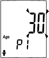 Baada ya kuthibitisha urefu wako, mfumo huenda kwenye mipangilio yako ya umri. Kama inavyoonyeshwa kwenye takwimu hapa chini, nambari inamulika kwenye onyesho. Kwa kushikilia kitufe chini