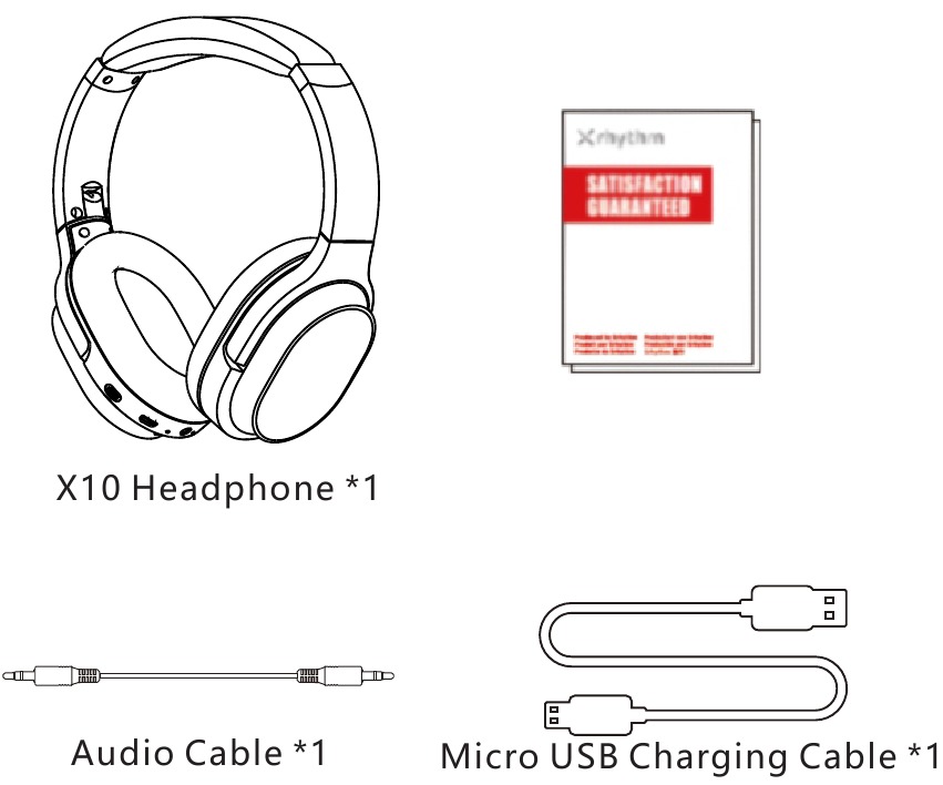 Tumia kebo ya kuchaji ya micro USB iliyojumuishwa ili kuunganisha kwenye Lango la Kuchaji la vipokea sauti. Unganisha ncha nyingine ya kebo ya kuchaji kwenye bandari ya USB ya kompyuta au chaja ya ukuta ya USB chini ya voltage ya 6.3V. Zima Bluetooth ya vipokea sauti na kazi ya ANC kabla ya kuchaji. Tafadhali usitumie vipokea sauti wakati unachaji. Taa ya kiashiria cha LED itazimwa au rangi ya bluu wakati imejaa chaji kulingana na hali ya kuzima ya vipokea sauti. Anzisha Bluetooth ya simu yako ya mkononi na utafute jina la kuoanisha la Bluetooth la vipokea sauti X10 ili ubonyeze ili kuoanisha.(Taa ya kiashiria cha LED itakuwa ya bluu inayowaka polepole baada ya kuoanisha kwa mafanikio.)