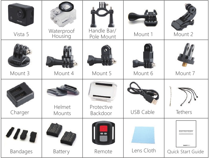 Karibu kwenye Vista 5 yako mpya. Ili kunasa video na picha, unahitaji kadi ya microSD (inauzwa kando).