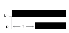 - Ucheleweshaji wa OFF: Wakati voltage ya usambazaji inapotumika, relay ya pato hubadilika kuwa nafasi ya ON (imewashwa) na muda uliorekebishwa t unaanza kuhesabiwa. Relay ya pato hubadilika kuwa nafasi ya OFF (imezimwa) mwishoni mwa muda t. Hali hii inabaki hadi voltage ya usambazaji itakatizwa. Ikiwa voltage ya usambazaji imekatizwa kabla ya kumalizika kwa muda uliorekebishwa, muda ambao tayari umeisha unafutwa na unaanzishwa tena wakati voltage ya usambazaji inapotumika tena.