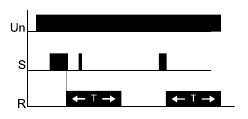 - Pigo Moja la Ukingo wa Nyuma na Ingizo la Udhibiti: Wakati voltage ya usambazaji inapotumika, kutumia ishara ya kichochezi haina ushawishi wowote juu ya hali ya relay ya pato. Wakati ishara ya kichochezi inakatizwa, relay ya pato hubadilika kuwa nafasi ya ON (imewashwa) na muda uliorekebishwa t unaanza kuhesabiwa. Relay ya pato hubadilika kuwa nafasi ya OFF (imezimwa) mwishoni mwa muda. Wakati wa muda uliorekebishwa, ishara ya kichochezi haijaathiri utendaji wa kifaa. Mwishoni mwa muda t, ishara ya kichochezi huanza mzunguko unaofuata.