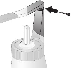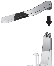 - Pumzisha lever katika nafasi iliyo wima ili vipande vya mviringo katikati ya upande wa chini wa mpini vionekane. Bonyeza kinga ya michirizi ya uwazi (C) kwenye vipande vya mviringo, itabonyeza mahali pake. Panga vipande kwenye kibonyezo cha matunda cheusi (D) na upau wa chuma katikati ya vipande vya mviringo, kisha geuza saa moja kwa robo ya mzunguko ili kufunga mahali pake. Mara baada ya kufungwa mahali pake, kibonyezo cha matunda (D) hakiwezi kuvutwa, lakini kinaweza kusogezwa juu na chini.