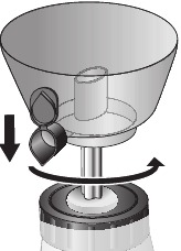 - Telezesha koni ya kuchua juisi katikati ya eksisi nyeusi katikati ya kichujio cha massa (F) na uangalie kuwa koni inazunguka vizuri saa na kinyume cha saa.