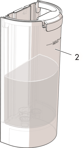 - Jaza tanki (2) na maji safi na salama moja kwa moja kutoka kwenye bomba au kwa kutumia mtungi, ukiwa mwangalifu usizidi kiwango cha juu kilichoonyeshwa kwenye tanki.