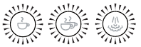- Taa (2) na (3) zitawaka kuonyesha kuwa mashine inafikia halijoto iliyowekwa awali. Mashine ya espresso iko tayari kutumika mara tu taa zinapoacha kuwaka.