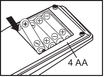 - Ingiza betri nne mpya (ukubwa AA) kwenye chumba cha betri kama inavyoonyeshwa. Ingiza upande wa (–) kwanza.