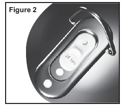 - Ili kuchagua Uendeshaji wa Saa 24, telezesha kitufe cha manjano kwenye kofia chini kwenye modi ya "24 Hrs" (Saa 24). Kifaa kitaendelea kuwashwa saa 24 kwa siku.