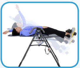 Kugeuza kamili kunafafanuliwa kama kuning'inia chini kabisa (90°) huku mgongo wako ukiwa huru kutoka kwa Kitanda cha Meza. USIJARIBU hatua hii hadi uwe na raha kabisa kudhibiti mzunguko wa meza ya kugeuza na kugeuza hadi 60°. Ili kupata faida, hauitaji kamwe kugeuza kikamilifu. Walakini, watumiaji wengi wa Teeter wanafurahia kugeuza kamili kwa sababu ya uhuru ulioongezwa kwa kunyoosha na mazoezi. Ili kugeuza kikamilifu: