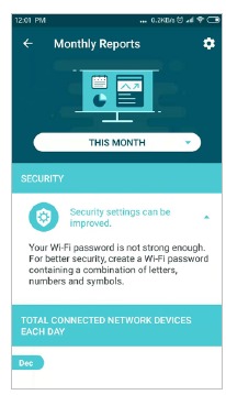 Kagua takwimu za matumizi ya kila mwezi, kama vile vitisho vya usalama na jumla ya vifaa vya mtandao vilivyounganishwa kila siku.