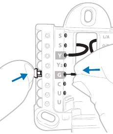 - Ikiwa K ilitumika kwenye thermostat ya zamani una kihifadhi waya kwenye vifaa. Uwekaji waya upya unahitaji kufanywa ili Y na G zitumike badala ya K.