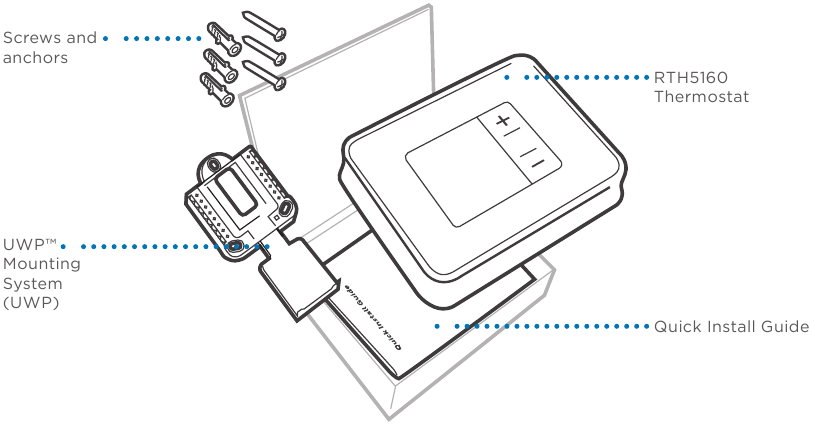 ![Honeywell Home - RTH5160 Series - Inasakinisha kifaa chako - Hatua ya 3 - Pachika UWP Inasakinisha kifaa chako - Hatua ya 3 - Pachika UWP]()