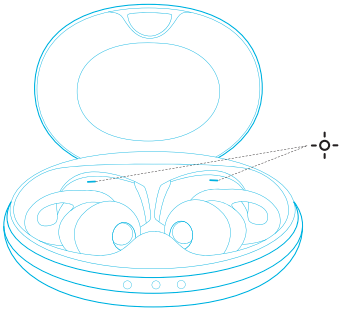 Viashiria vya LED kwenye kipochi cha kuchaji vinaonyesha hali ya kuchaji.