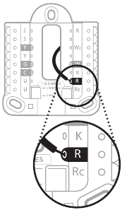 - Ikiwa kidhibiti chako cha zamani cha halijoto kilikuwa na waya zote za R na RH, weka Kichupo cha Kitelezi cha R kwenye nafasi ya chini (waya 2). Kisha uunganishe waya ya R kwenye kituo cha Rc, na waya ya RH kwenye kituo cha R.