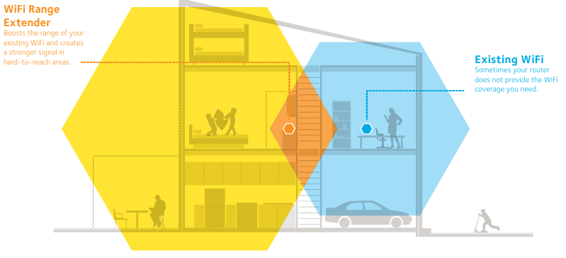 inawaka, na extender inaunganisha kwenye mtandao wako wa WiFi uliopo.