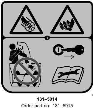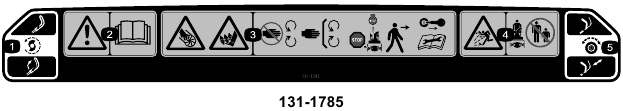 - Hatari ya kukata/kukatwa kwa mkono au mguu, auger—jiepushe na sehemu zinazohamia; weka vilinda na ngao zote mahali pake; zima injini na usubiri auger isimame kabla ya kuacha mashine; ondoa ufunguo na usome Mwongozo wa Opereta kabla ya kufanya matengenezo.