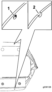 Kabla ya kila kipindi, kagua kingo za kurusha kwa uvaaji. Wakati ukingo wa kurusha umeisha hadi kwenye shimo la kiashiria cha uvaaji, weka Muuzaji wa Huduma Aliyeidhinishwa abadilishe kingo za kurusha (Mchoro 18).