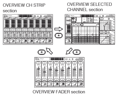 - Kurekebisha kila chaneli kwa kutumia sehemu ya FADER kwenye skrini ya OVERVIEW