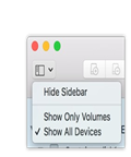 macOS kuanzia toleo la 10.13—Hakikisha unachagua kifaa cha kuhifadhi na si ujazo tu. Ikiwa hauoni maingizo mawili yameorodheshwa kwenye upau wa kando, badilisha mwonekano katika huduma ya diski ili kuonyesha hifadhi na ujazo. Kitufe cha mwonekano kiko upande wa juu kushoto wa dirisha la Huduma ya Diski. Badilisha mwonekano ili Onyesha Vifaa Vyote. Kipengele hiki kilitambulishwa katika macOS 10.13 na hakipatikani katika 10.11 au 10.12.
