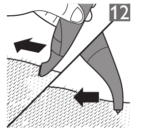 Kumbuka: Unaweza kutumia kichwa cha kupunguza kwa usahihi huku meno ya kupunguza yakielekeza kwenye ngozi. Unaweza pia kukitumia huku sehemu iliyonyooka ikigusa ngozi na meno yakielekeza upande ambao unasogeza kifaa (Mchoro 12).
