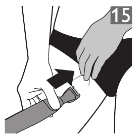 - Sogeza kifaa polepole na kwa shinikizo kidogo kinyume na mwelekeo wa ukuaji wa nywele. (Mchoro 15)