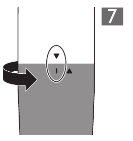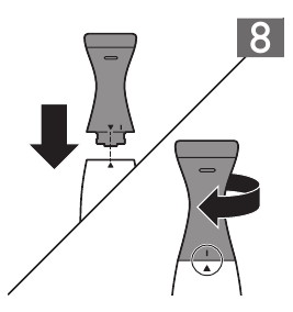 - Geuza kifuniko cha chumba cha betri kinyume cha mwendo wa saa hadi kiashiria cha kufunga kielekeze kwenye dalili ya 'kimefungwa'. (Mchoro 7)