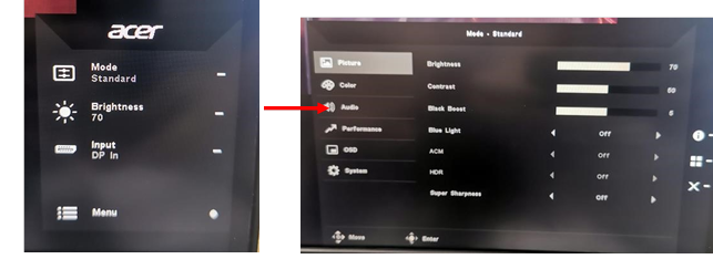 - Unganisha chanzo cha HDMI kwenye kifuatiliaji na ukiwashe. Tafadhali angalia vidhibiti vya mtumiaji kama hapa chini.