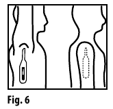 - Prob ucunu koltuk altına, ucun cilde değecek şekilde yerleştirin ve kolu vücudun yanına konumlandırın (Şekil 6). Küçük bir çocukta, kolunu vücudunun yanında tutmak için çocuğa sarılmak bazen yardımcı olur. Bu, oda havasının okumayı etkilememesini sağlar.
