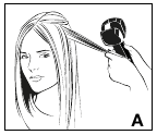 - 1 inçten daha geniş olmayan bir saç bölümünü ayırın (Şekil a).
