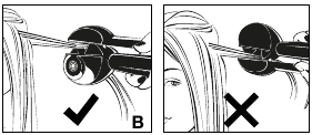 Bölümün temiz, kuru ve taranmış olduğundan emin olun. - Lütfen şekillendiricinin, bukle haznesinin açıklığı başa bakacak şekilde saça yerleştirilmesi gerektiğini unutmayın (Şekil b).