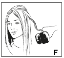 - Kolları tamamen serbest bırakmanız ve ardından saçı serbest bırakmak ve bukleleri ortaya çıkarmak için şekillendiriciyi nazikçe baştan uzaklaştırmanız çok önemlidir (Şekil F).