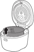 Pişirme sırasında Pilav pişiriciden su taşıyor | İç tencerenin içindeki ölçekte belirtilen ve kullanılan pirinç miktarına karşılık gelen seviyeye kadar su eklediğinizden emin olun. |