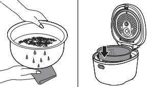 - Pişirme, sıcak tutma veya pirinci yeniden ısıtma sırasında pişirme kaplarını kabın içine koymayın.